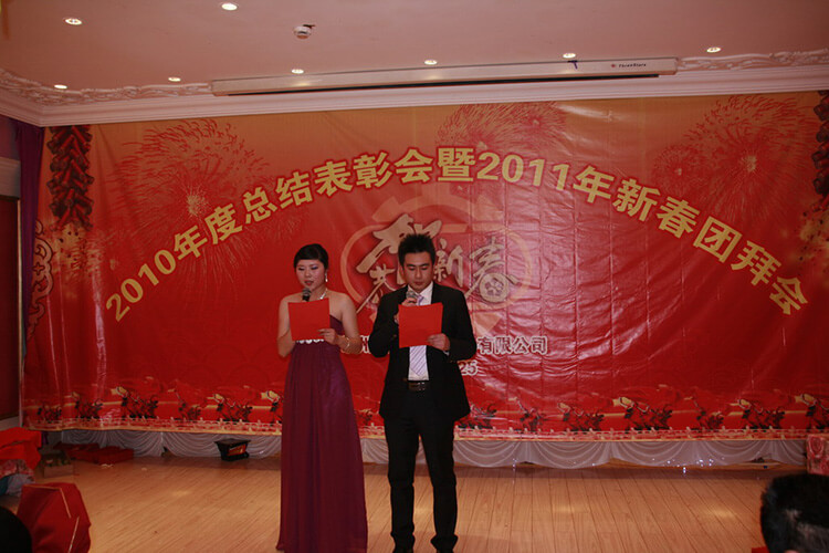 花放梅稍生意滿,春歸柳苑鳥聲和。在新春佳節來臨之際,公司2010年度總結表彰大會曁2011新春團拜會于2011年1月25日在福記飯店隆重舉行。公司經理班子全體成員、全體員工參加。會上,公司董事長兼總經理姜漢軍作新年致辭,他總結了2010年工作,部署安排2011年工作目標,常務副總經理王眉林主持。會上表彰了47位優秀員工,5位公司標兵,3個優秀團隊,頒發了1個創業獎、1個管理團隊獎。公司經理班子成員向全體員工拜了早年,向仍奮戰在生產經營一線的員工表示誠摯的問候。